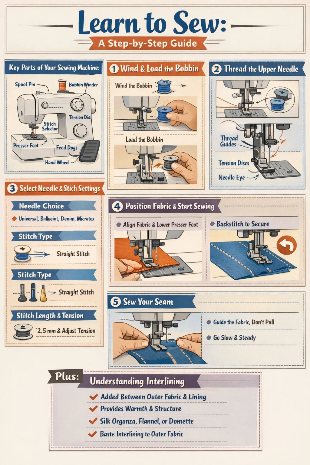 Ang pag-aaral kung paano gumawa ng isang makinang panahi nang sunud-sunod ay mas tapat kaysa sa inaasahan ng karamihan sa mga baguhan. Ang pangunahing proseso ay bumaba sa limang aksyon: i-set up ang makina, i-wind at i-load ang bobbin, i-thread ang itaas na karayom, piliin ang iyong tusok, at tahiin. Kapag naitago mo na ang mga pangunahing kaalamang ito, maaari mong harapin ang lahat mula sa mga pangunahing laylayan hanggang sa mga structured na damit na ginagamit interlining — isang nakatagong layer na natahi sa pagitan ng panlabas na tela at lining na nagdaragdag ng katawan, hugis, at init. Ang gabay na ito ay naglalakad sa bawat hakbang nang detalyado upang maaari kang pumunta mula sa ganap na baguhan hanggang sa kumpiyansa na tahiin.