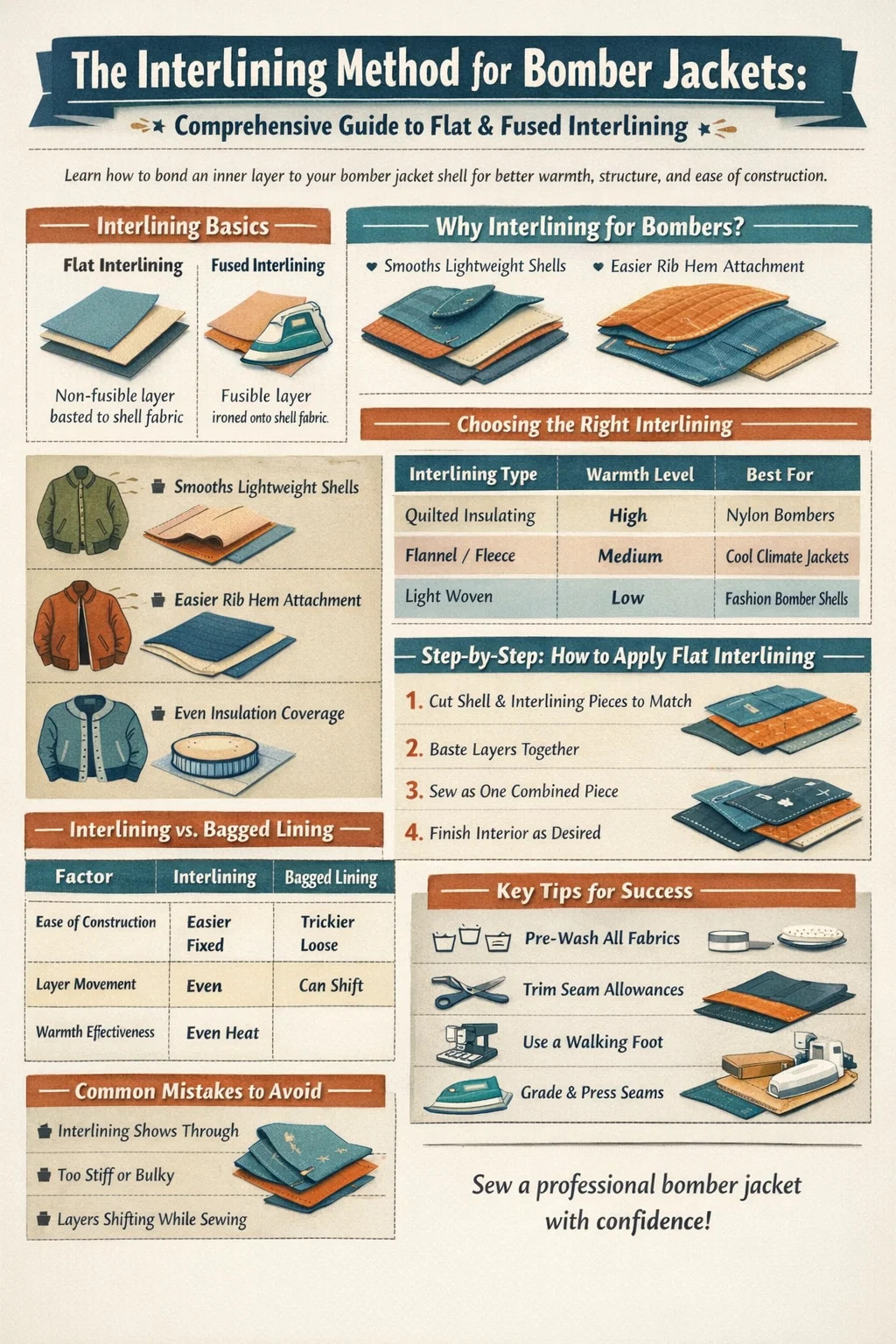 Oo, maaari mong ganap na gamitin ang interlining na paraan upang i-line ang isang bomber jacket — at para sa maraming sewer, ito talaga ang mas matalinong pagpipilian kaysa sa tradisyonal na maluwag na lining. Ang interlining method ay nagbubuklod o nakakabit ng pangalawang layer ng tela nang direkta sa iyong mga piraso ng panlabas na shell dati pag-assemble ng damit, na nagbibigay sa iyo ng higit na kontrol sa istraktura, init, at pagtatapos. Gumagamit ka man ng isang magaan na nylon shell o isang heavyweight wool varsity, ang interlining ay umaangkop nang maayos sa bomber construction. Sabi nga, hindi ito palaging ang default na diskarte, at ang pag-alam kung kailan ito pinakamahusay na gumagana — at kung anong uri ng interlining ang pipiliin — ay gumagawa ng lahat ng pagkakaiba sa pagitan ng isang dyaket na mukhang propesyonal at isang jacket na puckers, bungkos, o pakiramdam naninigas.