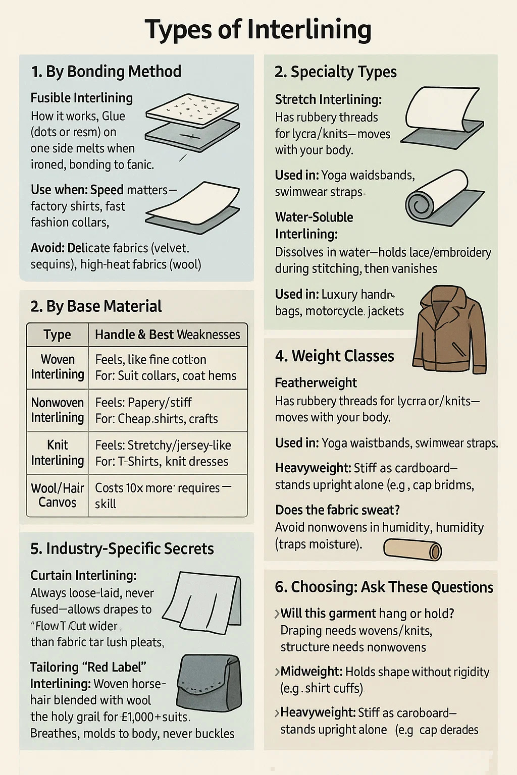 | Pinagtagpi ang pakikipag -ugnay | • Pakiramdam: tulad ng pinong koton • Para sa: Mga suit ng collars, coat hems | Mga wrinkles kung mali ang hiwa ng butil |