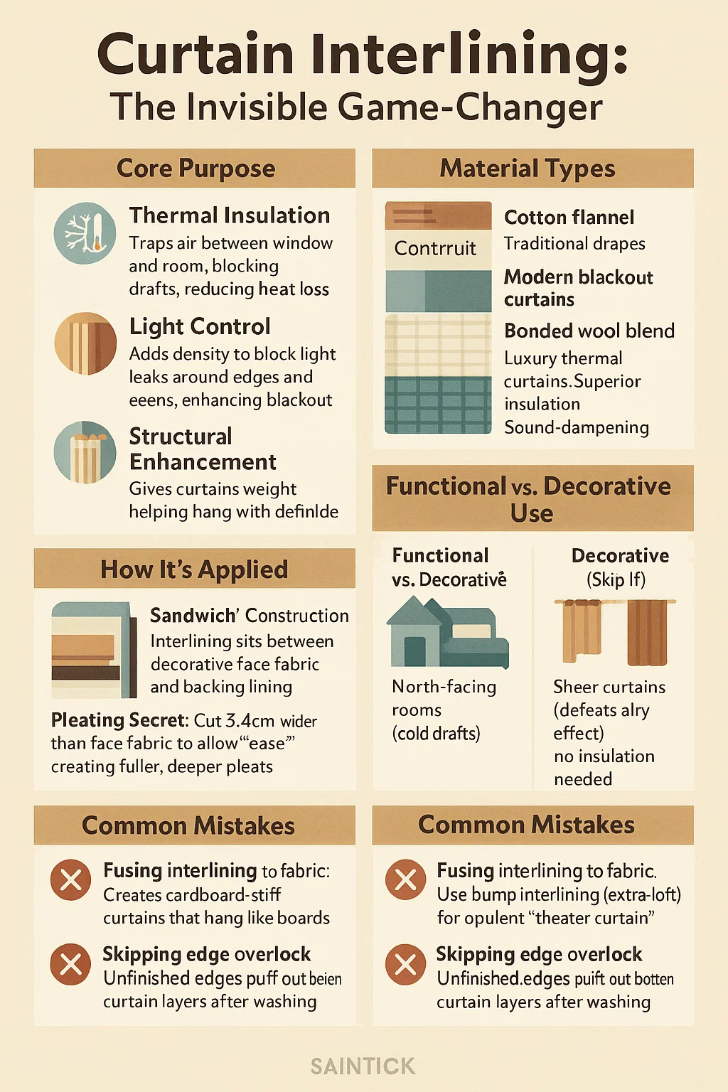 Heavy Velvets/Damasks: Gumamit ng bump interlining (extra-loft) para sa masaganang "theater curtain" na timbang.