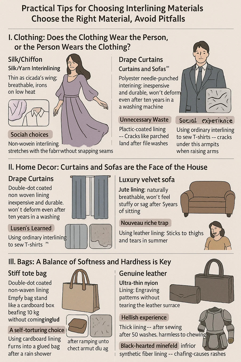 Mga praktikal na tip para sa pagpili Interlining Mga Materyales: Piliin ang tamang materyal, maiwasan ang mga pitfalls